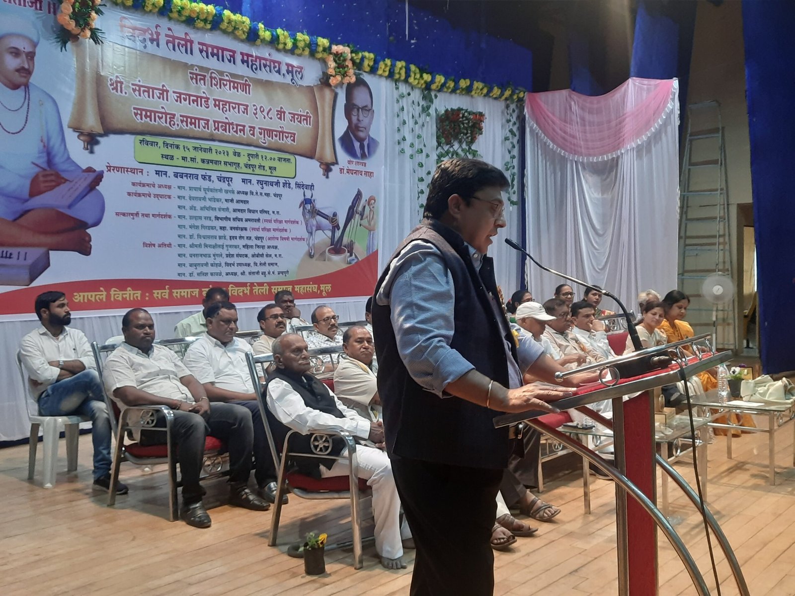 विदर्भ तेली समाज महासंघ शाखा मूलच्या वतीने आयोजित संत शिरोमणी श्री संताजी जगनाडे महाराज जयंती, समाज प्रबोधन व गुणगौरव सोहळ्यात आ. अँड.अभिजीत वंजारी बोलत होते.