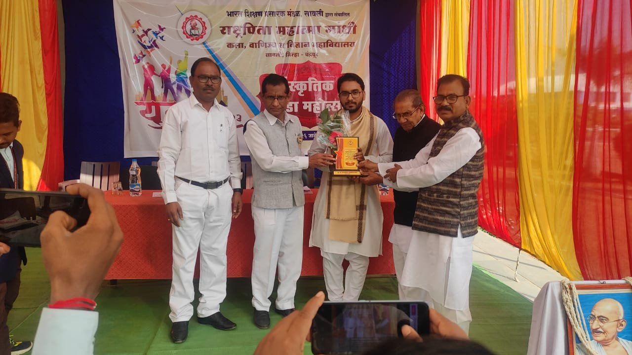 चार दिवस चाललेल्या युवारंग क्रिडा व सांस्कृतिक महोत्सवा दरम्यान आयोजीत केलेल्या विविध मैदानी, बौध्दीक व सांस्कृतिक स्पर्धेत शेकडो विद्यार्थ्यांनी सहभाग घेवून सुप्तकलागुणांना वाव दिला. महोत्सवाचा समारोप नुकताच संपन्न झाला. भारत शिक्षण प्रसारक मंडळ सावलीचे सचिव राजाबाळ संगीडवार यांचे अध्यक्षतेखाली संपन्न झालेल्या कार्यक्रमास गोंडवाना विद्यापीठाचे मानव्य विद्याशाखेचे अधिष्ठाता डाॅ. ए. चंद्रमौली, शिक्षण संस्थेचे कोषाध्यक्ष डाॅ. विजय शेंडे, महाविद्यालयाचे कार्यकारी प्राचार्य डाॅ. अशोक खोबरागडे आदि उपस्थित होते. प्रारंभी राष्ट्रपिता महात्मा गांधी आणि संस्थाध्यक्ष स्व. वामनरावजी गड्डमवार यांच्या प्रतिमांना मान्यवरांनी अभिवादन केले. कार्यक्रमा दरम्यान महाविद्यालयाचे प्रा. विजयसिंग पवार यांनी आचार्य पदवी प्राप्त केल्याबद्दल संस्था सचिव राजाबाळ संगीडवार यांचे हस्ते सत्कार करण्यांत आला. डाॅ. प्रफुल वैराळे आणि डाॅ. सचिन चौधरी यांनी लिहीलेल्या वाणिज्य व विज्ञान अभ्यासक्रमाच्या पुस्तकाचे प्रकाशन करण्यांत आले. महाविद्यालयातील शिक्षकेत्तर कर्मचारी यांचे पाल्य अपुर्वा सागर येलट्टीवार आणि क्रिष्णा संजय पडोळे यांनी इयत्ता बारावी मध्यें प्राविण्य मिळविल्याबद्दल मान्यवरांचे हस्ते गौरव करण्यांत आला. महाविद्यालयातील गरीब, गरजु आणि हुशार विद्यार्थ्यांना गणवेष आणि स्पर्धा परिक्षांच्या पुस्तकाचे वितरण करण्यांत आले. कार्यक्रमाचे प्रास्ताविक प्रा. प्रशांत वासाडे यांनी केले. डाॅ. रामचंद्र वासेकर यांनी संचलन आणि प्रा. प्रकाश घागरगुंडे यांनी आभार मानले. महोत्सवा दरम्यान आयोजीत विविध स्पर्धाच्या यशस्वीतेसाठी शारिरीक क्रिडा प्रमुख डाॅ. भास्कर सुकारे, सांस्कृतिक विभाग प्रमुख प्रा. स्मिता राऊत, प्रा. संदीप देशमुख, प्रा. देवीलाल वताखेरे, डाॅ. राजश्री मार्कंडेवार यांचेसह शिक्षक व शिक्षकेत्तर कर्मचारीवृंदानी परिश्रम घेतले.