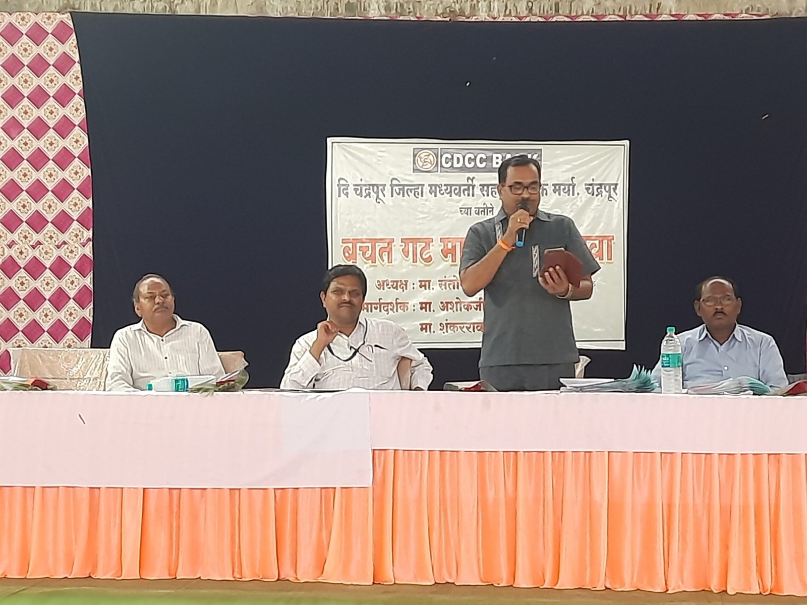 मूल : चंद्रपूर जिल्हा मध्यवर्ती सहकारी बँकेच्या मूल शाखेच्या वतीने स्थानिक दुर्गा मंदीर येथील योग नृत्य परीवारातील महीलांचा बचत गट मार्गदर्शन मेळावा जिल्हा मध्यवर्ती सहकारी बँकेचे अध्यक्ष संतोषसिंह रावत यांचे मार्गदर्शनात संपन्न झाला. शाखा व्यवस्थापक मधुकर लेनगुरे मेळाव्याच्या अध्यक्षस्थानी होते, ज्येष्ठ सामाजिक कार्यकर्ते केदारनाथ कोटगले यांचेसह गट सल्लागार अशोक पवार आणि शंकर लोंढे मार्गदर्शक म्हणुन उपस्थित होते. यावेळी उपस्थित महिलांना मार्गदर्शक अशोक यांनी बचत गटाच्या निर्मिती पासुन महीलांच्या जीवनात बचत गटाची आवश्यकता आणि योगदान या विषयावर तर मार्गदर्शक शंकर लोंढे यांनी बचत गटाच्या माध्यमातुन करावयाची कार्यपध्दती, बचत गटाचे फायदे आणि उभारावयाचे उद्योग या विषयावार मार्गदर्शन केले. शाखा व्यवस्थापक मधुकर लेनगुरे यांनी बचत गटाच्या निर्मिती मध्ये बँकेच्या सहकार्याच्या धोरणावर मनोगत व्यक्त केले. कार्यक्रमाचे संचलन श्यामलता बेलसरे यांनी तर वैशाली काळे यांनी आभार मानले. राष्ट्रगिताने मेळाव्याची सांगता झाली. मेळाव्याला योग नृत्य परीवारातील महीला व पुरूष मोठ्या संख्येनी उपस्थित होत्या. स्थानिक दुर्गा मंदीर येथील योग नृत्य परीवारातील महीलांचा बचत गट मार्गदर्शन मेळावा जिल्हा मध्यवर्ती सहकारी बँकेचे अध्यक्ष संतोषसिंह रावत यांचे मार्गदर्शनात संपन्न झाला. शाखा व्यवस्थापक मधुकर लेनगुरे मेळाव्याच्या अध्यक्षस्थानी होते, ज्येष्ठ सामाजिक कार्यकर्ते केदारनाथ कोटगले यांचेसह गट सल्लागार अशोक पवार आणि शंकर लोंढे मार्गदर्शक म्हणुन उपस्थित होते. यावेळी उपस्थित महिलांना मार्गदर्शक अशोक यांनी बचत गटाच्या निर्मिती पासुन महीलांच्या जीवनात बचत गटाची आवश्यकता आणि योगदान या विषयावर तर मार्गदर्शक शंकर लोंढे यांनी बचत गटाच्या माध्यमातुन करावयाची कार्यपध्दती, बचत गटाचे फायदे आणि उभारावयाचे उद्योग या विषयावार मार्गदर्शन केले. शाखा व्यवस्थापक मधुकर लेनगुरे यांनी बचत गटाच्या निर्मिती मध्ये बँकेच्या सहकार्याच्या धोरणावर मनोगत व्यक्त केले. कार्यक्रमाचे संचलन श्यामलता बेलसरे यांनी तर वैशाली काळे यांनी आभार मानले. राष्ट्रगिताने मेळाव्याची सांगता झाली. मेळाव्याला योग नृत्य परीवारातील महीला व पुरूष मोठ्या संख्येनी उपस्थित होत्या.