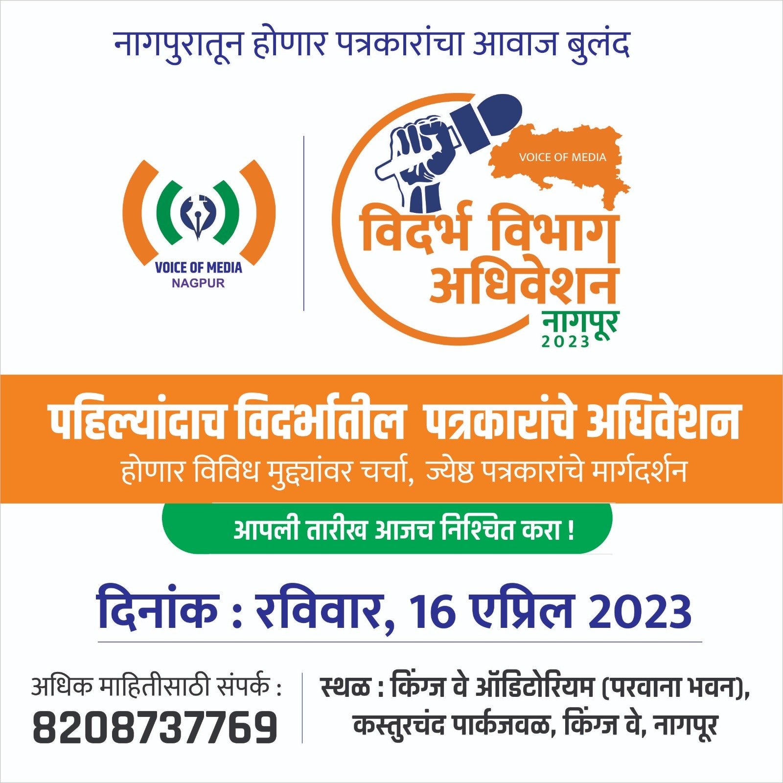 पत्रकारांच्या समस्यांवर चर्चा, उपायांवर मंथन होईल. व्हॉईस ऑफ मीडियाची भूमिका, भविष्यातील उपक्रम आदींची माहिती देण्यात येईल. या कार्यक्रमात आपण सहभागी होऊन पत्रकारांच्या हक्कासाठीच्या चळवळीला बळ द्यावे, असे आवाहन व्हाईस ऑफ मीडियाचे विदर्भ अध्यक्ष मंगेश खाटिक, पालक सचिव (विदर्भ) संजय पडोळे, संयोजक तथा जिल्हा अध्यक्ष आनंद आंबेकर, शहर अध्यक्ष फहीम खान, जिल्हाध्यक्ष सर्वश्री लक्ष्मीकांत बगाडे (बुलढाणा), अमर घाटरे (अमरावती), नंदकिशोर परसावार (भंडारा), भागवत मापारी (वाशिम), संजय राठोड (यवतमाळ), प्रमोद पाणबुडे (वर्धा), व्यंकटेश दुडमवार (गडचिरोली), संजय खांडेकर (अकोला), प्रमोद नागनाथे (गोंदिया) आणि विदर्भ कार्यकारिणीतील पदाधिकाऱ्यांनी केले आहे.