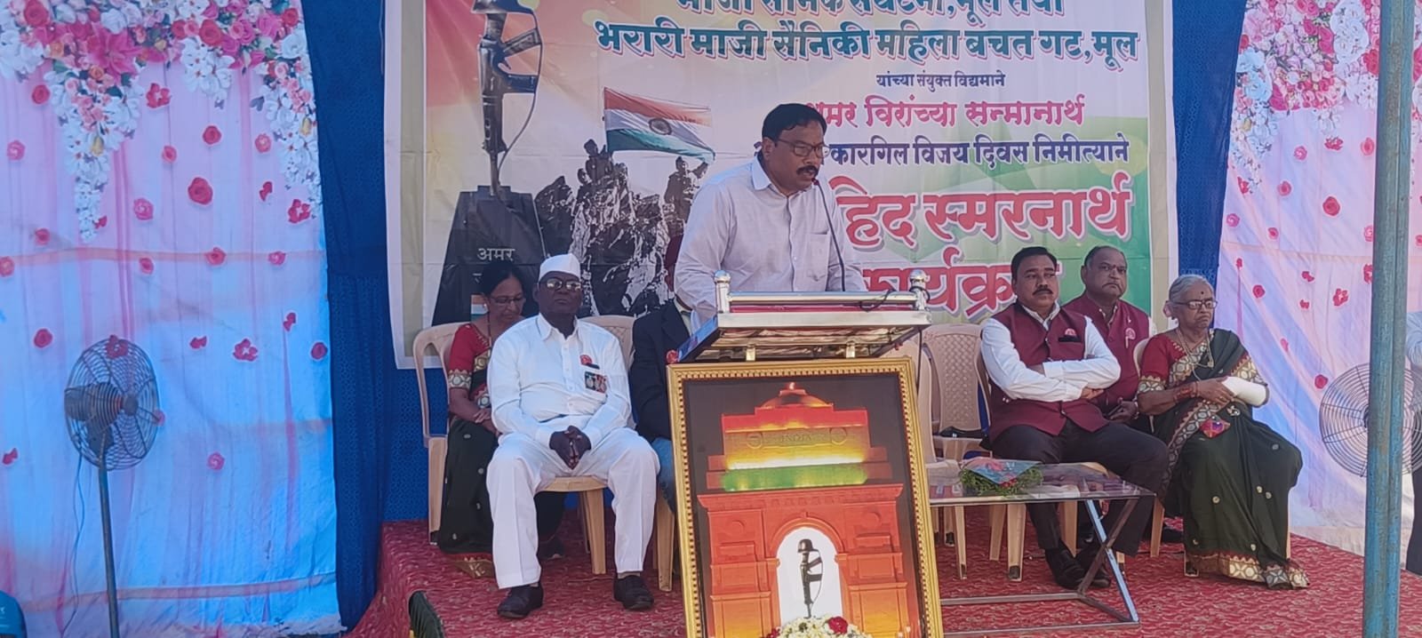 स्थानिक माजी सैनिक संघटना आणि भरारी माजी सैनिक महीला बचत गट यांच्या संयुक्त विद्यमाने अमर विरांच्या सन्मानार्थ आयोजित कारगील विजय दिवसाच्या कार्यक्रमात ते बोलत होते. तालुका समन्वय समितीचे अध्यक्ष प्रभाकर भोयर यांच्या अध्यक्षतेखाली पार पडलेल्या कार्यक्रमास माजी सैनिक कल्याण बहुउद्देशिय संस्था चंद्रपूरचे अध्यक्ष हरीश गाडे, सचिव राजेंद्र भोयर, पदाधिकारी महादेव बोढे, लक्ष्मण निकुरे, तालुका अध्यक्ष एकनाथ गडेकर, भरारी महीला बचत गटाच्य पुष्पा जंबुलवार आदी उपस्थित होते.